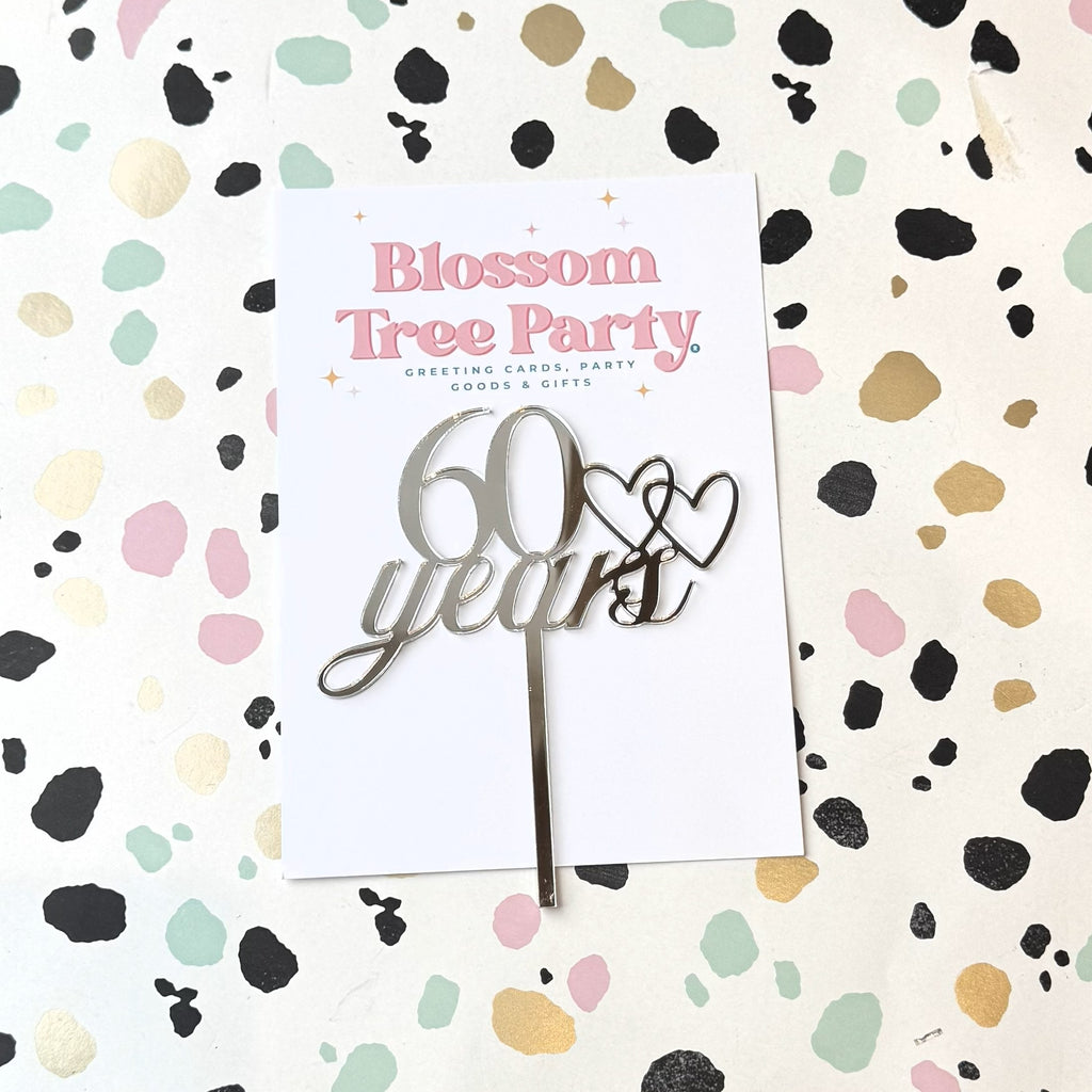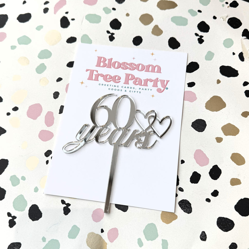 Silver Mirrored Acrylic 60 Years Cake Topper